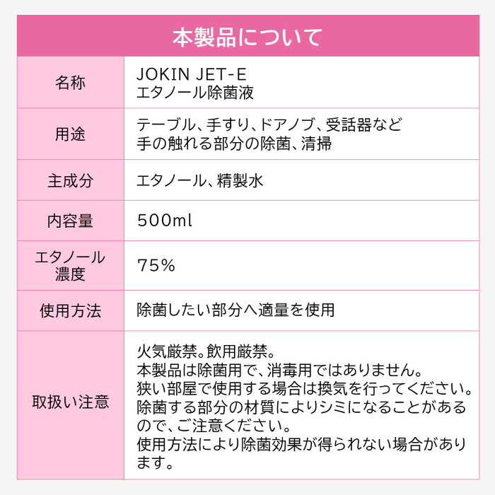 アルコール除菌スプレー JOKIN JET-E 広範囲業務用 (エタノールアルコール配合) 500ml×6本セット 【沖縄・離島 お届け不可】
