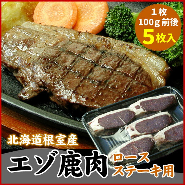[北海道根室産]エゾ鹿(ロース)ステーキ用100g前後×5枚(計500g前後) A-07023 北海道根室産のエゾ鹿肉です。