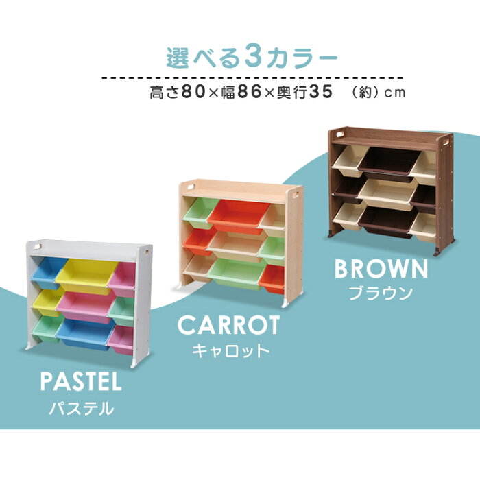色分けされていることで「どこに何を片づける」のルールが決めやすく、お子様の自立心をサポートし楽しくお片付けができる収納用品です。