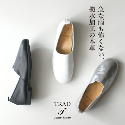 TRAD 本革 handmada in japan 撥水ソフトレザー 本革Lカットスリッポン ブランド:TRAD カラー ホワイト・シルバー・ブラック サイズ 【サイズ選びについて】 ・素足・薄手の靴下で履く場合…普段のサイズより0.5cm大きめでも問題ないかと思います。