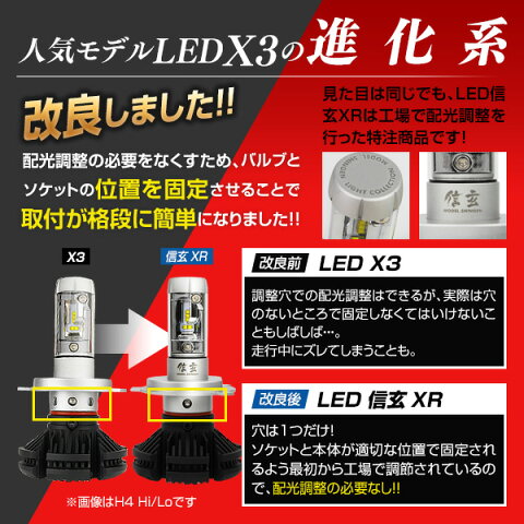 実測値14240〜17800cd ここがスゴイ【2】 気分で選べる4色のカラーバリエーションを特注!! カラーフィルムを貼るだけで3000K・6500K・8000K・10000Kの色味に変更自在 ここがスゴイ【3】 別売の同色ポジション球でファッション性大幅UP! ヘッドライトやフォグランプと同じ色味で揃えられる 、4色のポジション球もご用意! ■ヘッドライトの様々な問題点を解消した最強モデル ・驚異の明るさ&立ち上がりの速さ ・長寿命30,000時間!壊れにくいファンレス設計 ・純正ハロゲンランプの配光を忠実に再現 ・取付簡単!狭いスペースでも取付が可能 ・ノイズキャンセラー内蔵 ・ハイブリット車・24V車にも対応 ・カットライン最強モデル誕生!品質・光量・配光 全てがトップクラスの性能!LED信玄 XR